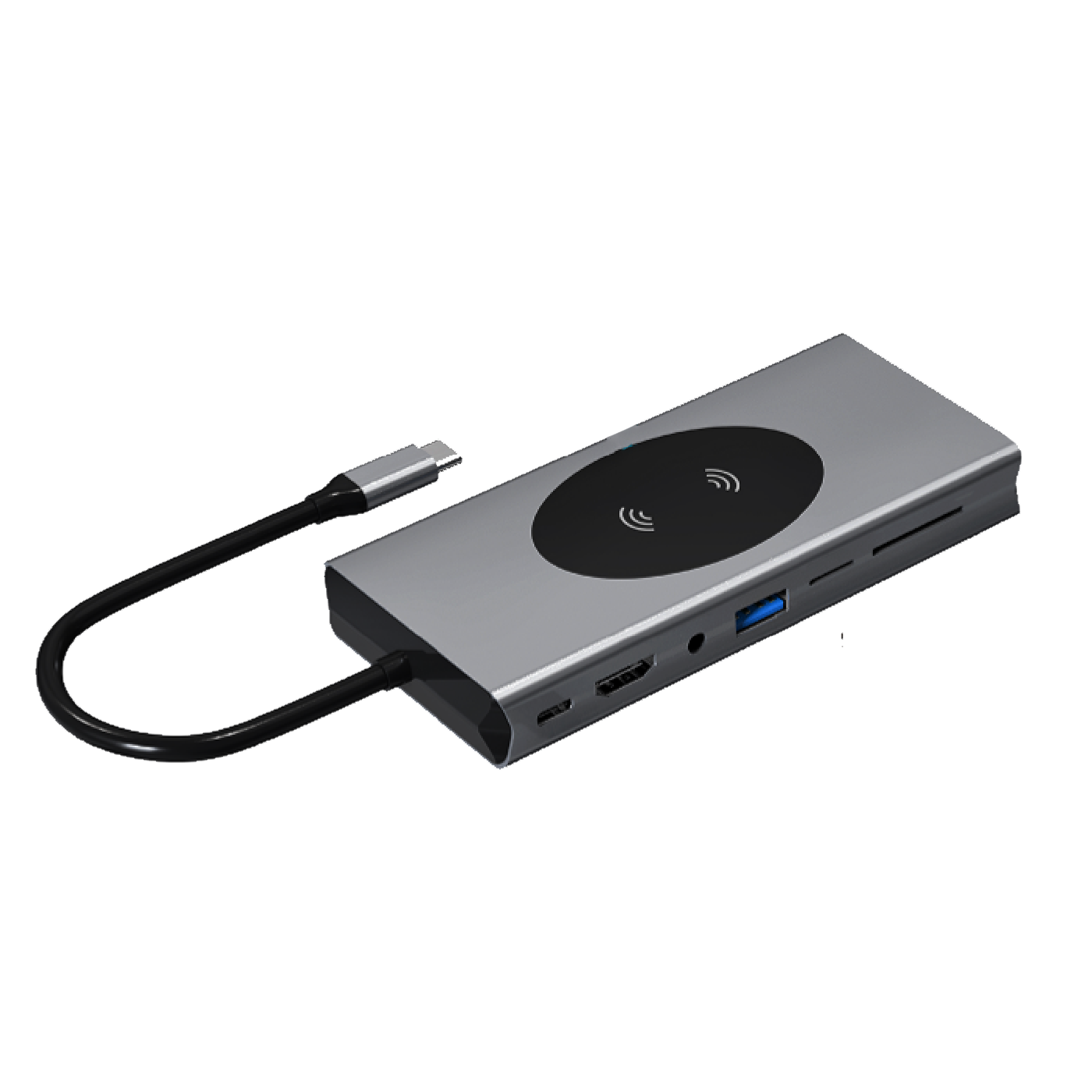 The GL-45 15-in-1 Type C Multiport Adapter redefines what a docking station can do. Designed for high-performance users, it combines a massive range of 15 connectivity options into one sleek aluminum body. It includes dual display outputs (HDTV 4K60Hz and VGA) to support multi-monitor setups, SD/TF card slots for creators, and a combination of USB 3.0 and USB 2.0 ports for all your accessories. Adding to its versatility, the adapter supports wireless charging for smartphones, making it an all-in-one desktop hub. With Power Delivery up to 100W, you can charge laptops while running peripherals, while the RJ45 port ensures fast and stable networking. Built from aluminum alloy, the GL-45 offers durability, excellent cooling, and a professional aesthetic. Plug-and-play across Windows, macOS, Linux, and Android, it’s perfect for those who need a complete workstation solution in one compact device. Whether at the office, studio, or classroom, the GL-45 is the ultimate productivity hub.
