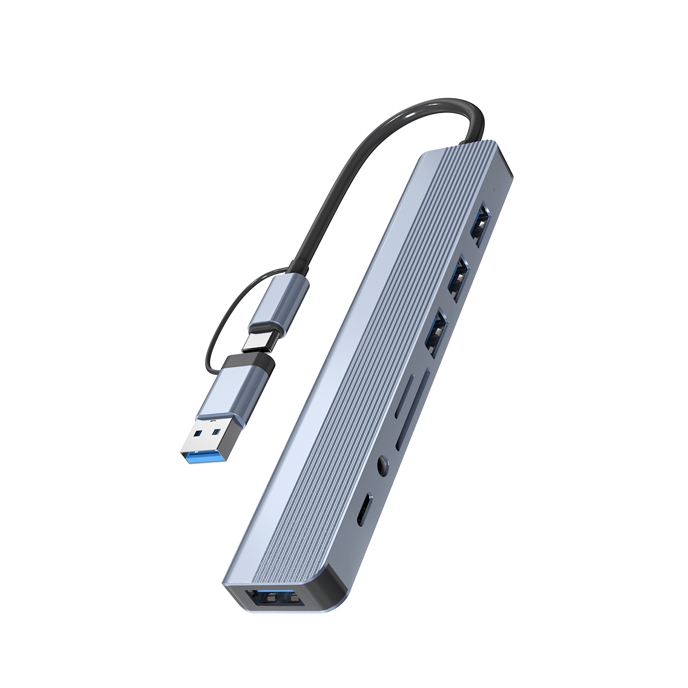 1*USB3.0 + 3*USB2.0 + SD TF; Audio + Type-C Data; Aluminum Alloy; 5Gbps; Windows/Android/Mac/Linux